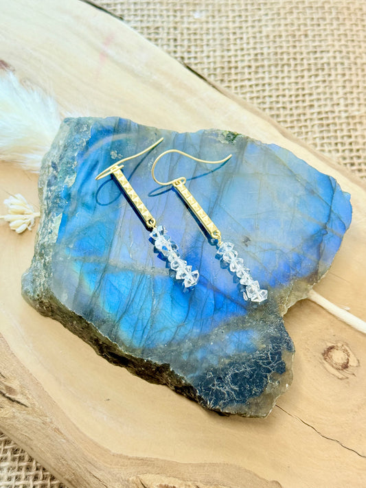 Herkimer Diamond + Matte Gold Stick Earrings