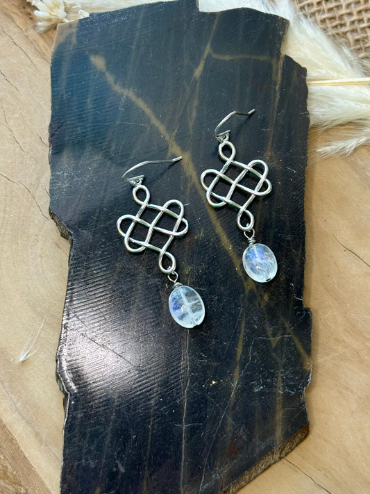 Rainbow Moonstone + Matte Silver Lacey Earrings