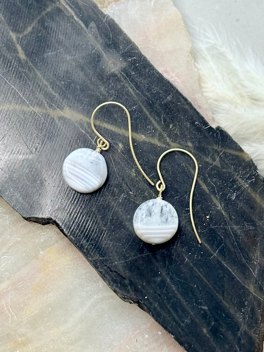 Yellow Botswana Agate + Matte Gold Diamond Earrings