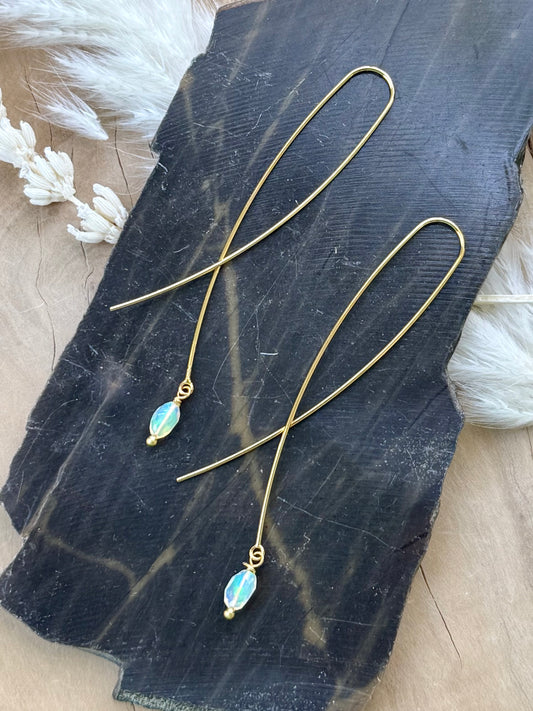 Ethiopian Opal + Matte Gold Infinity Earrings