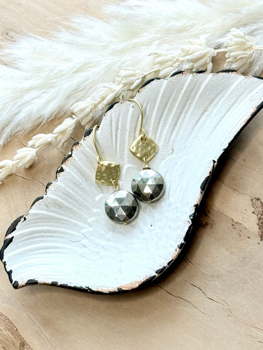 Herkimer Diamond + Matte Gold Diamond Earrings