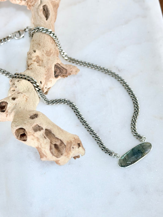 Labradorite + Antique Silver Bar Necklace