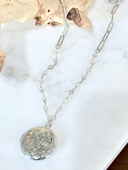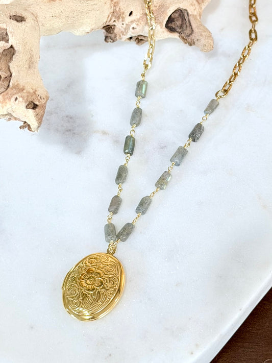 Labradorite Stainless Steel Locket Necklace