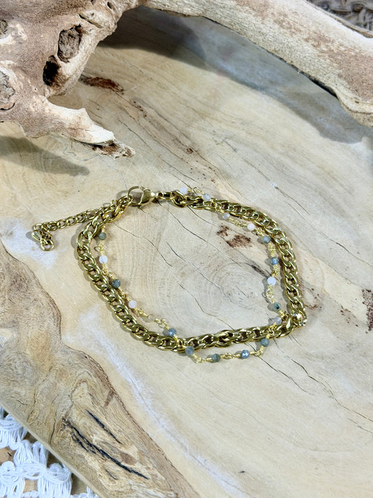 Mixed Moonstone + Gold Stainless Steel Duet Bracelet