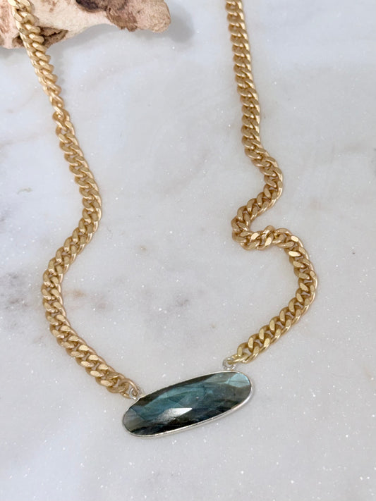 Labradorite + Matte Gunmetal Necklace