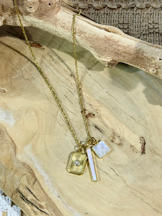 Rainbow Moonstone + Mother of Pearl Gold Necklace