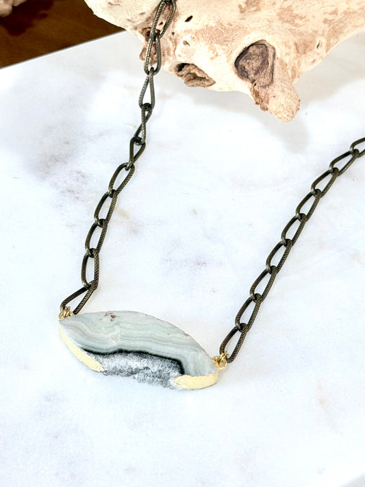 Agate Slice + Matte Gold Half Moon Necklace