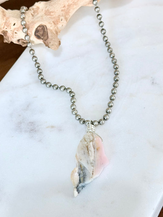 Pink Opal + Antique Silver Ball Chain Necklace