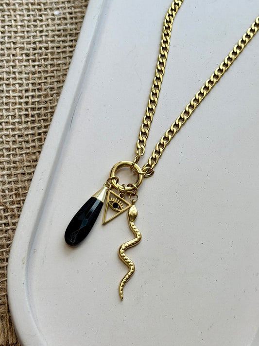 Amour + Protection Gold Carabiner Stainless Steel Necklace