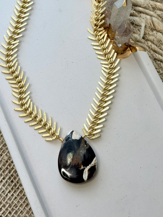 Rare Australian Peanut Wood + Matte Gold Fishbone Chain Necklace