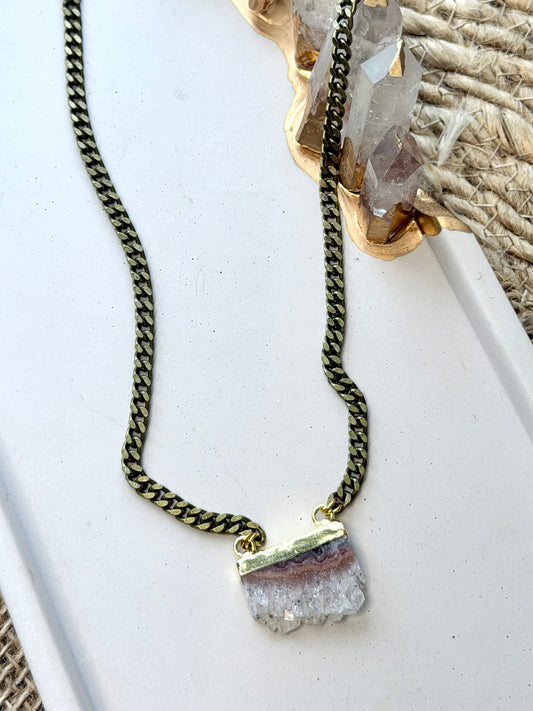 Striped Amethyst Stalactite + Antique Brass Necklace