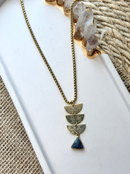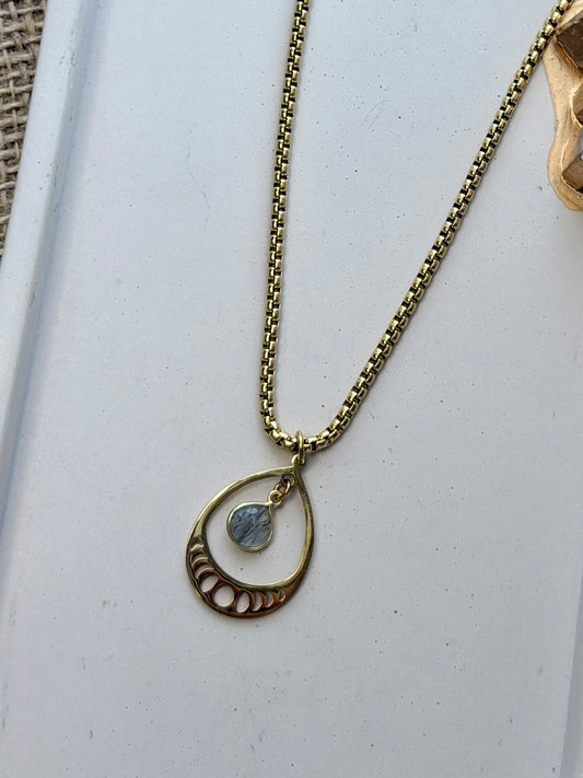 Rutilized Quartz Moon Phase + Gold Stainless Steel Necklace