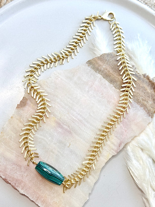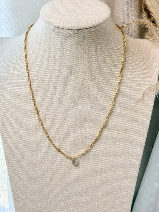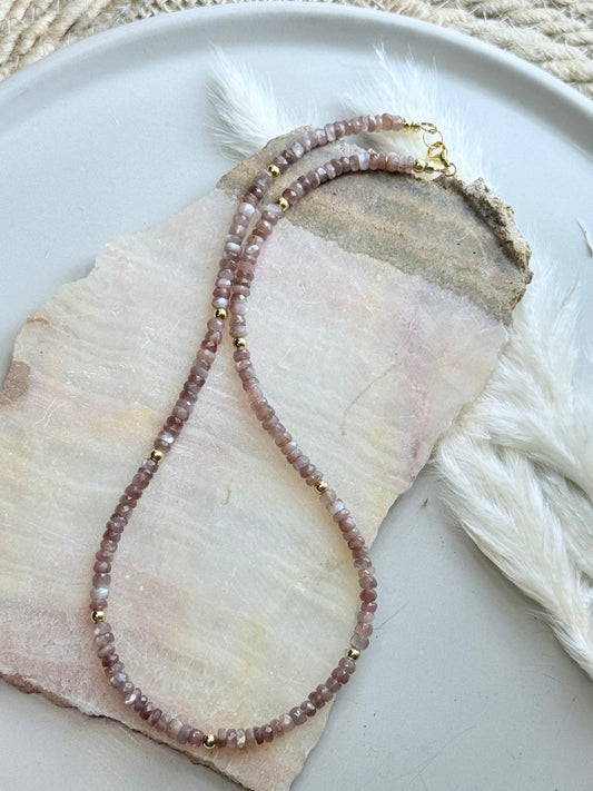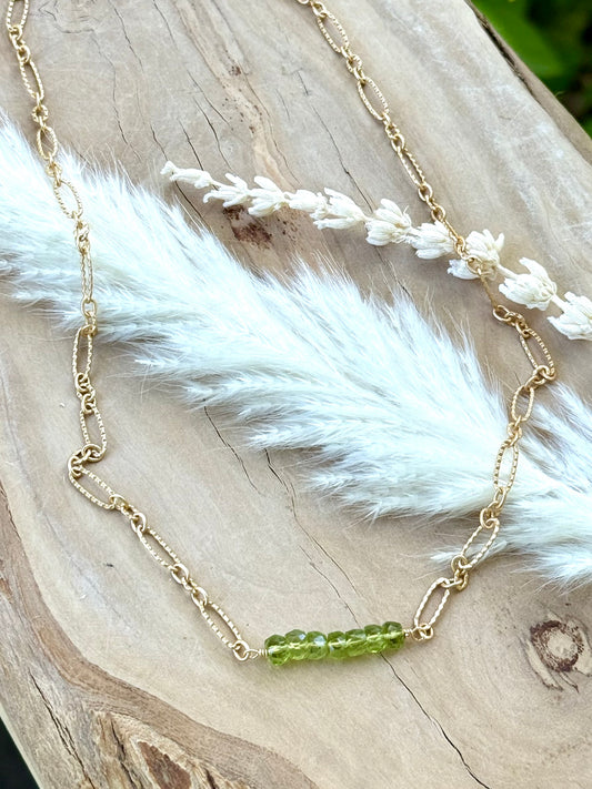 Neutral Chrysoberyl + Gold Beaded Necklace