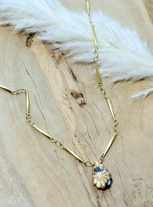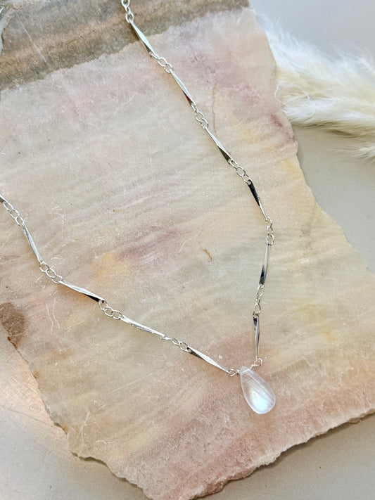 Chocolate Moonstone + Matte Gold Half Moon Necklace