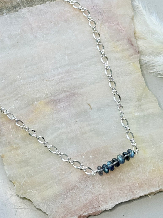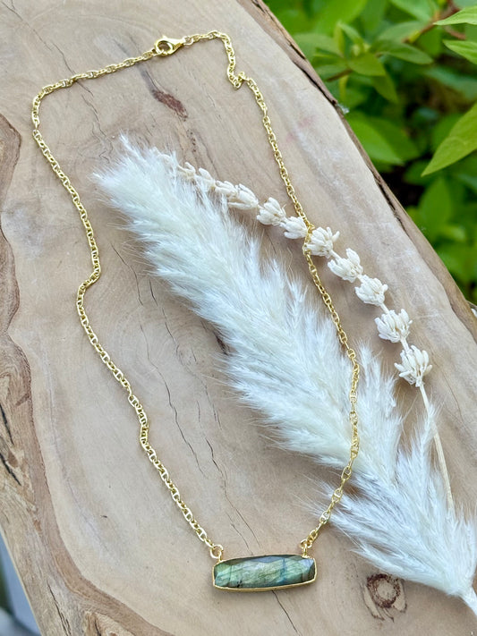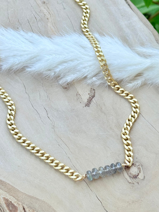 Luxe Grandidierite + Rainbow Moonstone Gold Necklace
