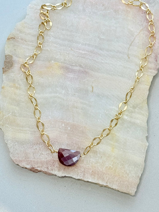 Amethyst + Matte Gold Half-Moon Chain Necklace