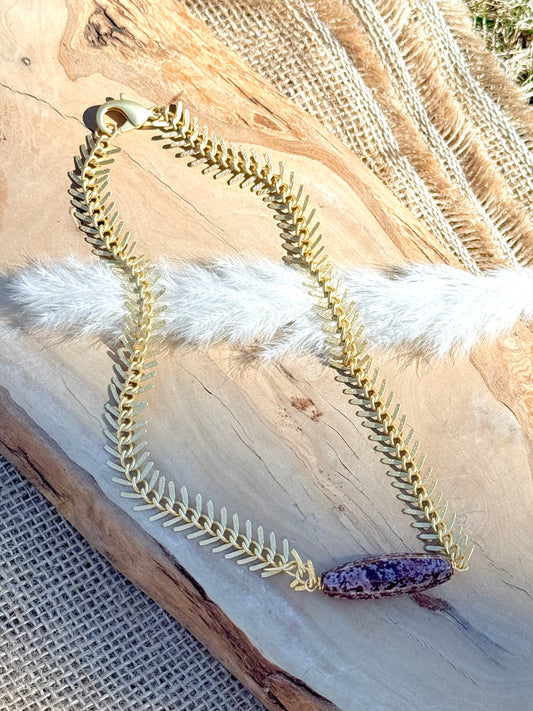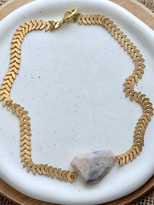 Peruvian Opal + Matte Gold Half-Moon Chain Necklace