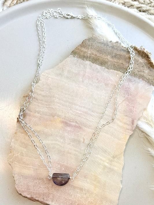 Iolite + Silver Half Moon Necklace