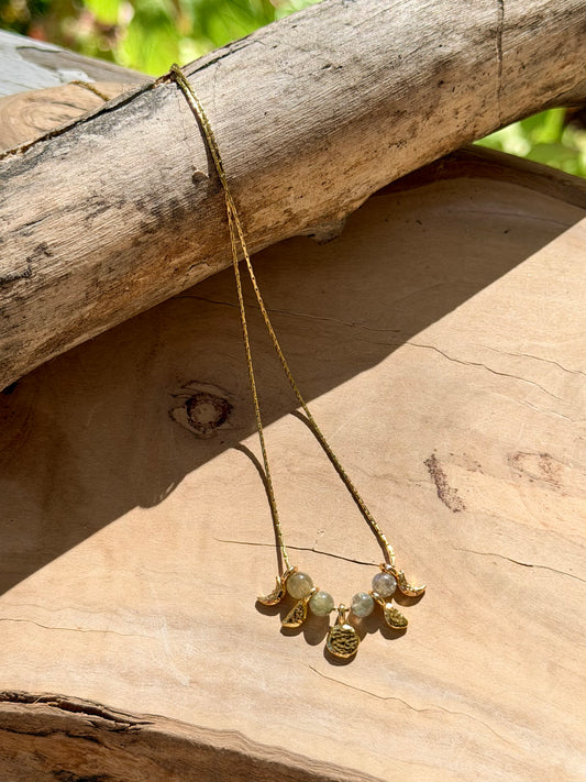 Rainbow Moonstone + Gold Moon Phases Necklace
