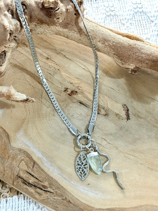 Goldstone + Gold Stainless Steel Carabiner Charm Necklace