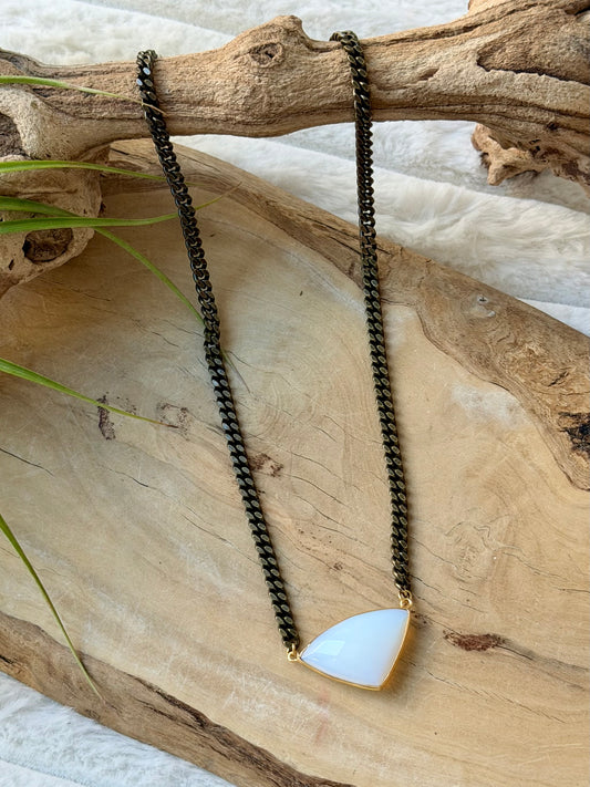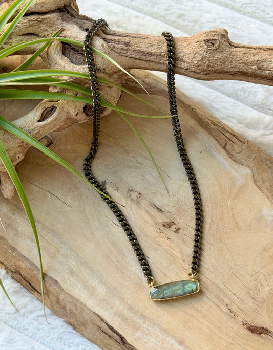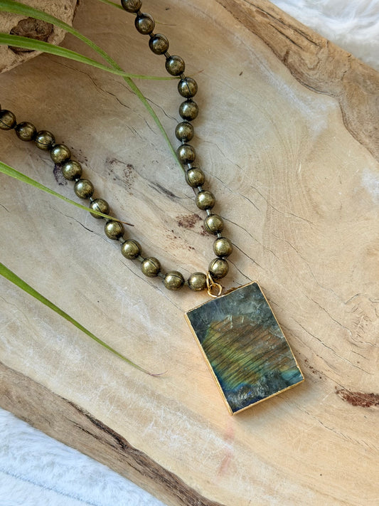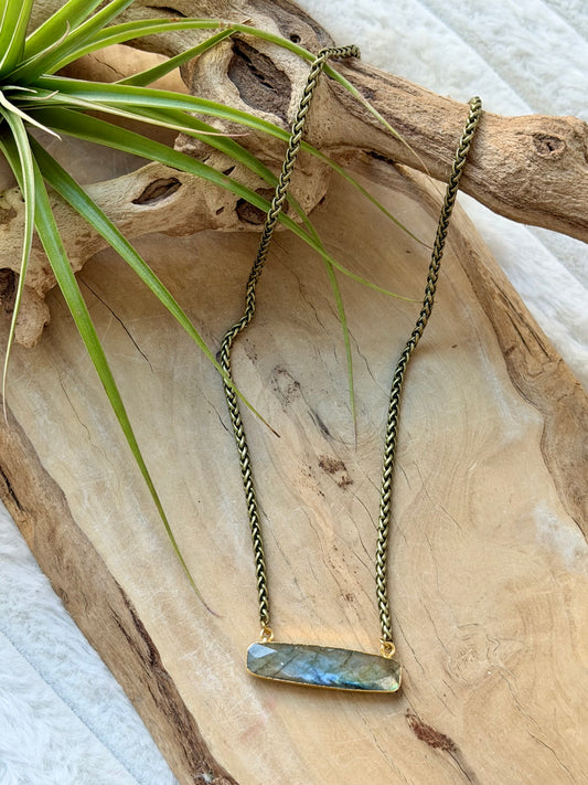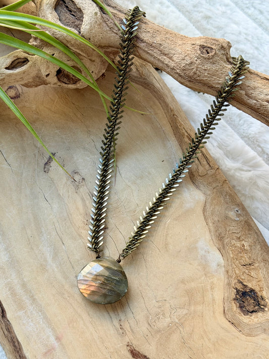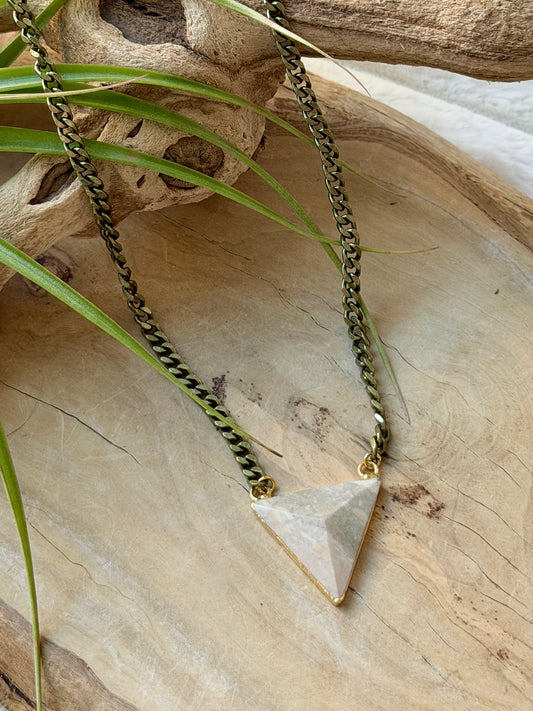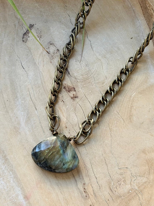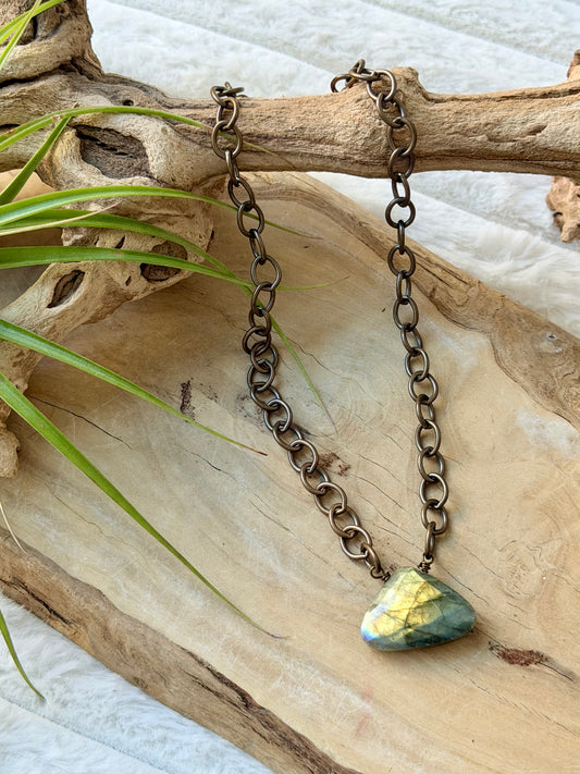 Labradorite Triangle Pendant + Antique Brass Necklace