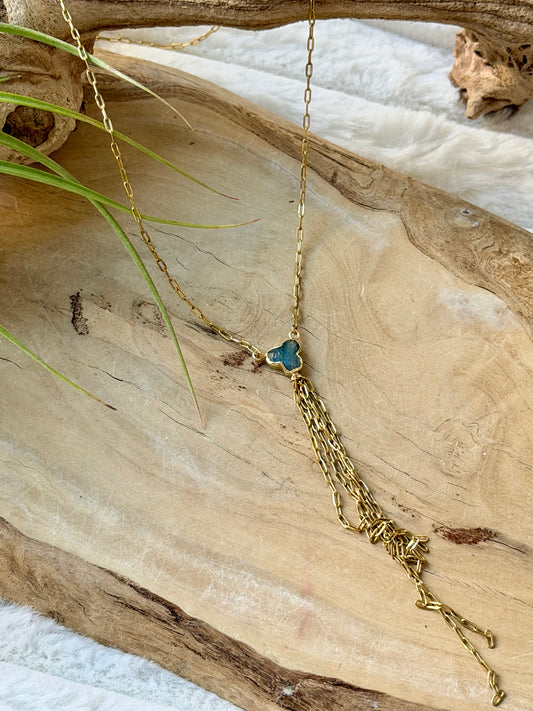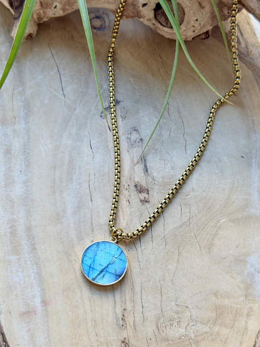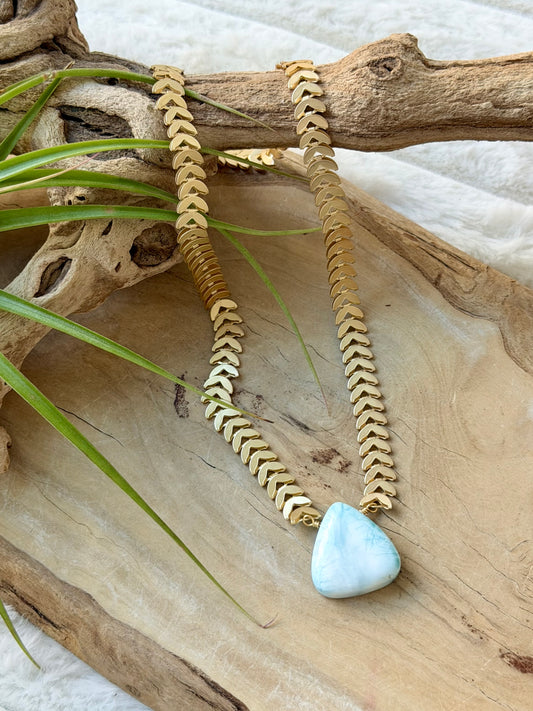 Larimar + Matte Gold Half-Moon Chain Necklace