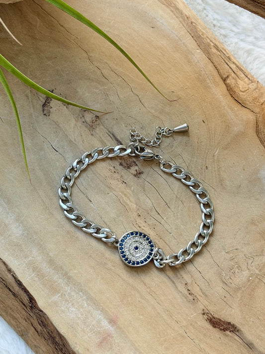 Wavy Evil Eye + Silver Curb Chain Bracelet