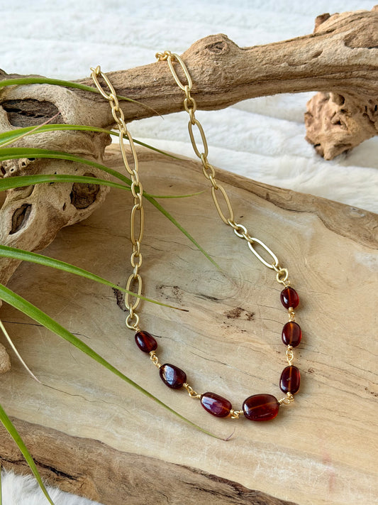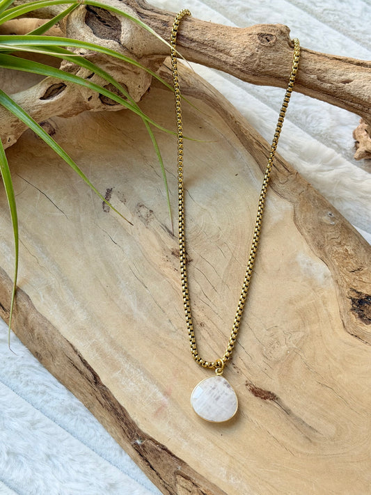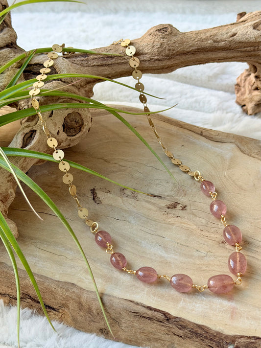 Strawberry Quartz + Matte Gold Sequin Necklace