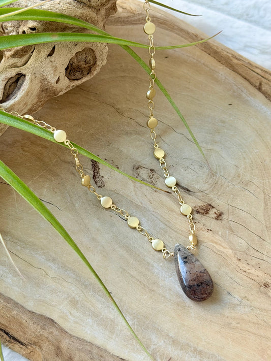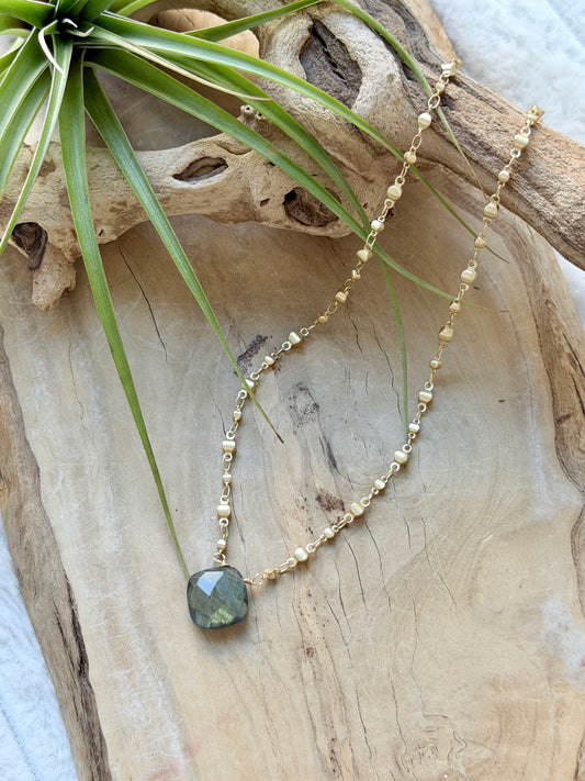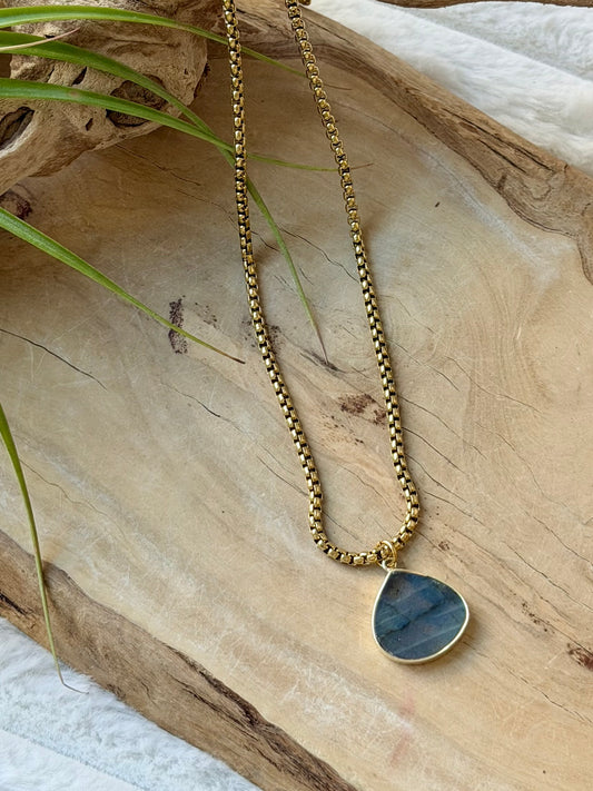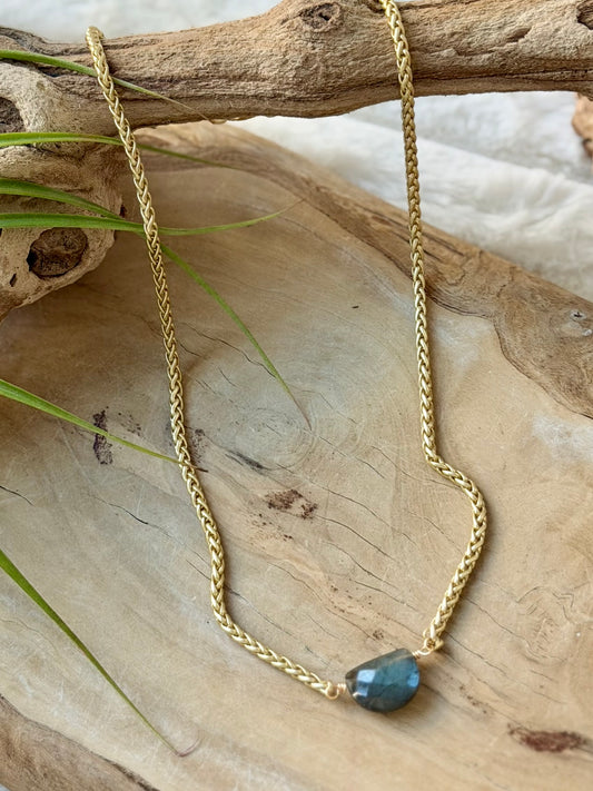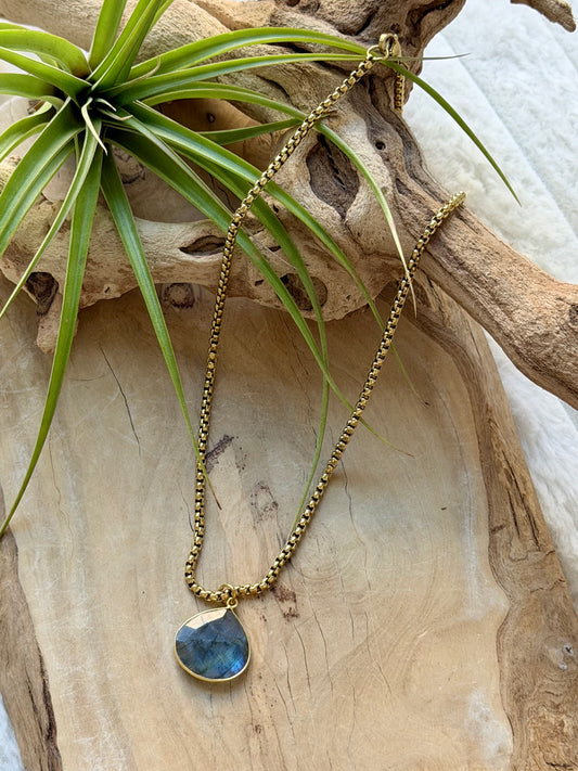 Labradorite + Gold Faceted Drop Pendant Necklace