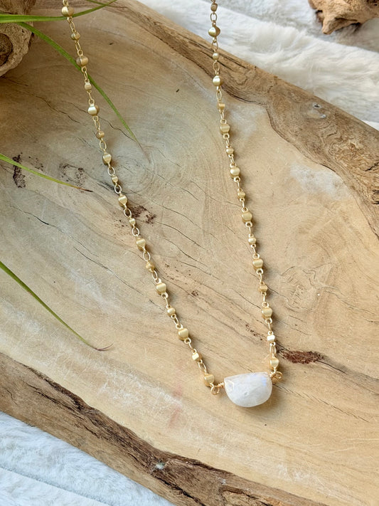 Rainbow Moonstone + Gold Faceted Drop Pendant Necklace