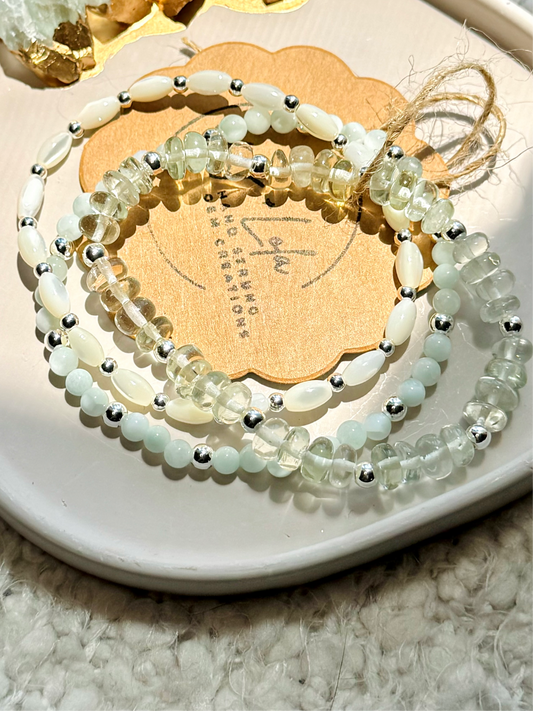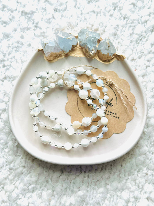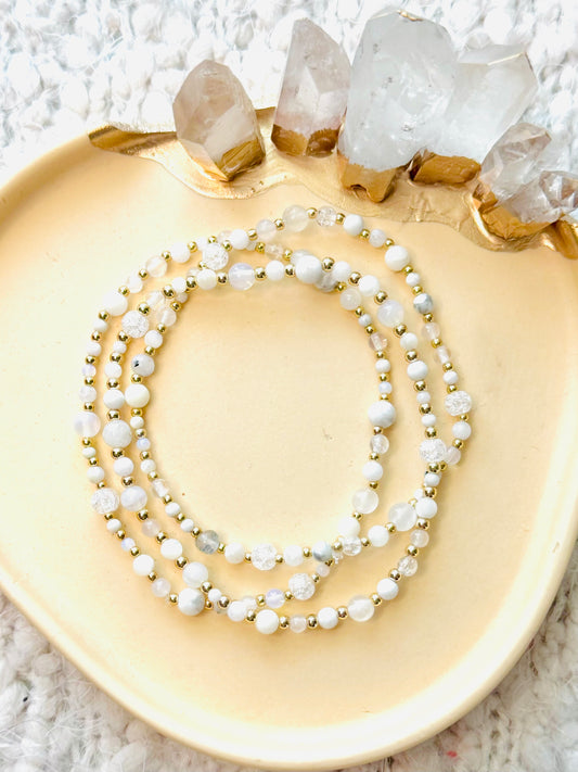 Gray Moonstone + Labradorite in Silver (4-stack)