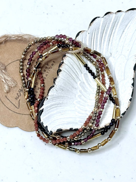 Cherry Blossom Agate + Rose Quartz Gold Stack (4-stack)