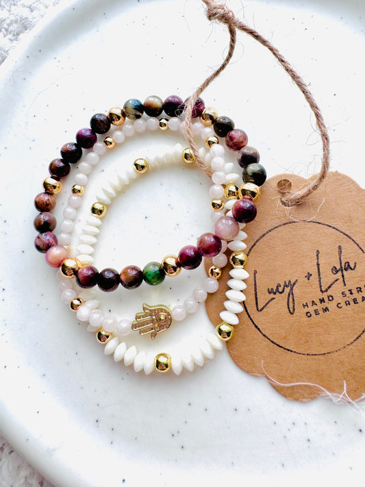 Pink + Brown in Gold (3-stack)