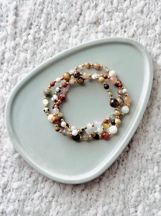 Neutral Mixed Gems + Gold (3-stack)