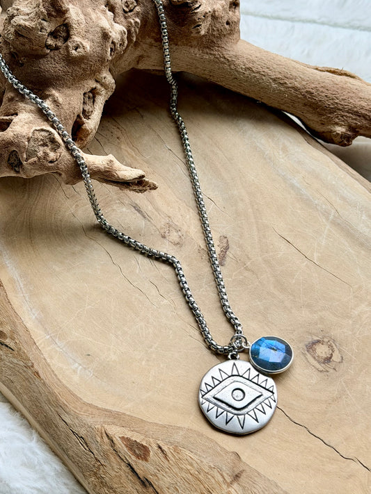 Labradorite + Silver Evil Eye Necklace