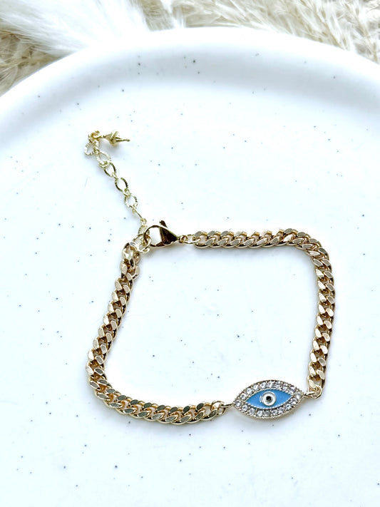 Wavy Evil Eye + Gold Curb Chain Bracelet