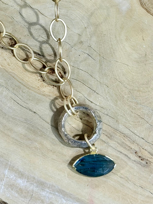 Labradorite + Evil Eye Mixed Metal Carabiner Bracelet