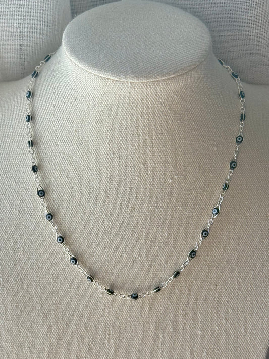 Black + White Evil Eye Chain Necklace