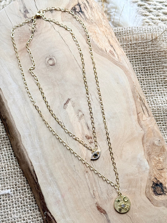 Black Evil Eye + Gold Duet Necklace