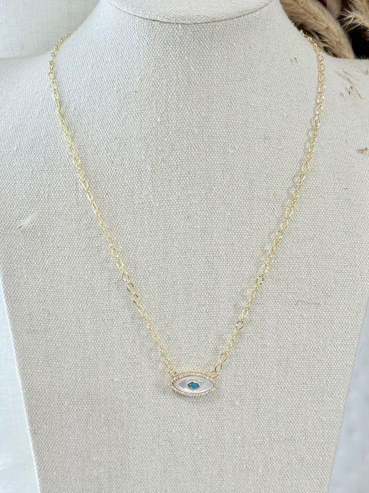 Mother of Pearl + Gold Evil Eye Necklace