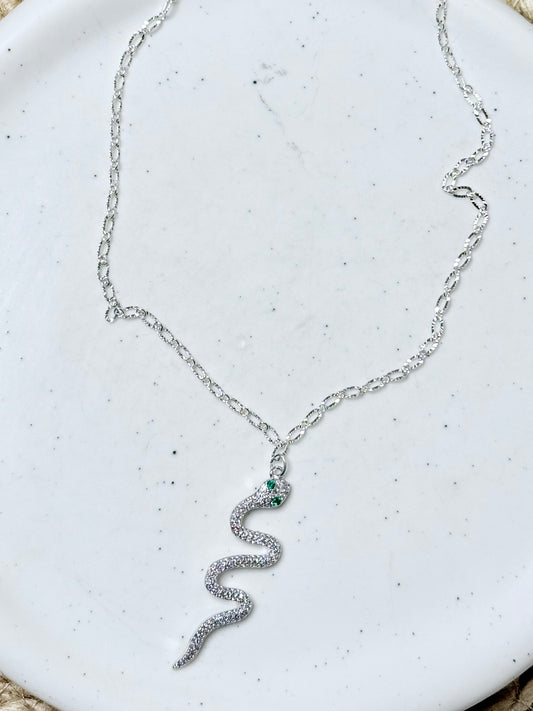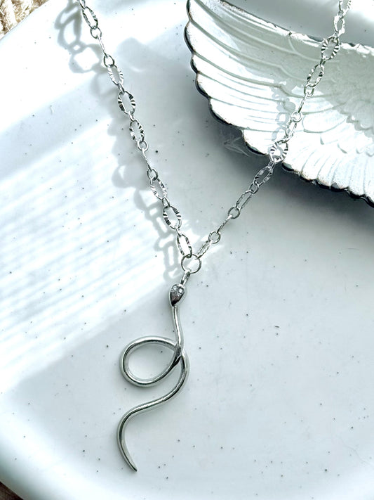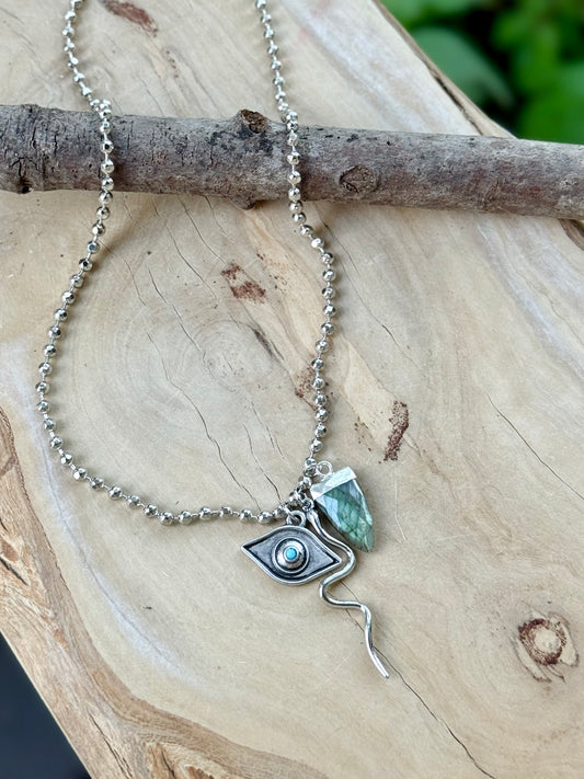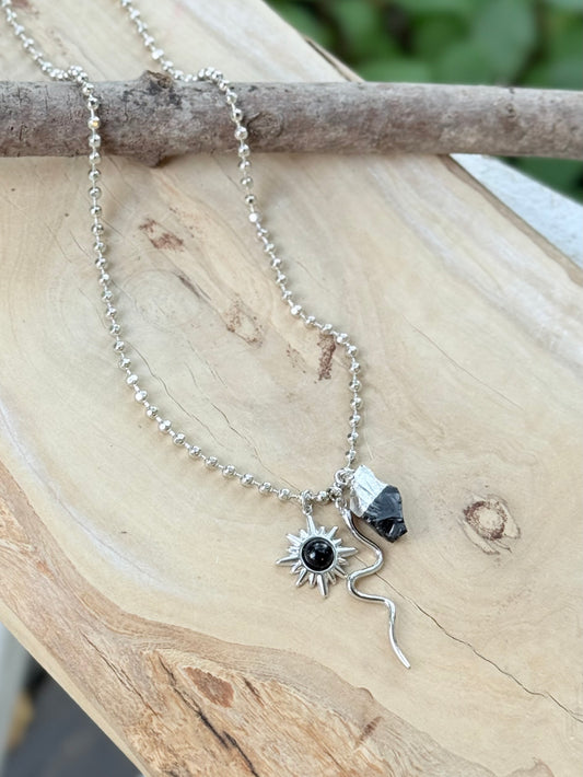 Chunky Matte Gunmetal Ball + Silver Snake Charm Bracelet