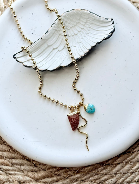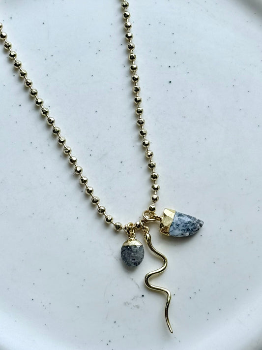 Chunky Brass Ball + Gold Snake Charm Bracelet