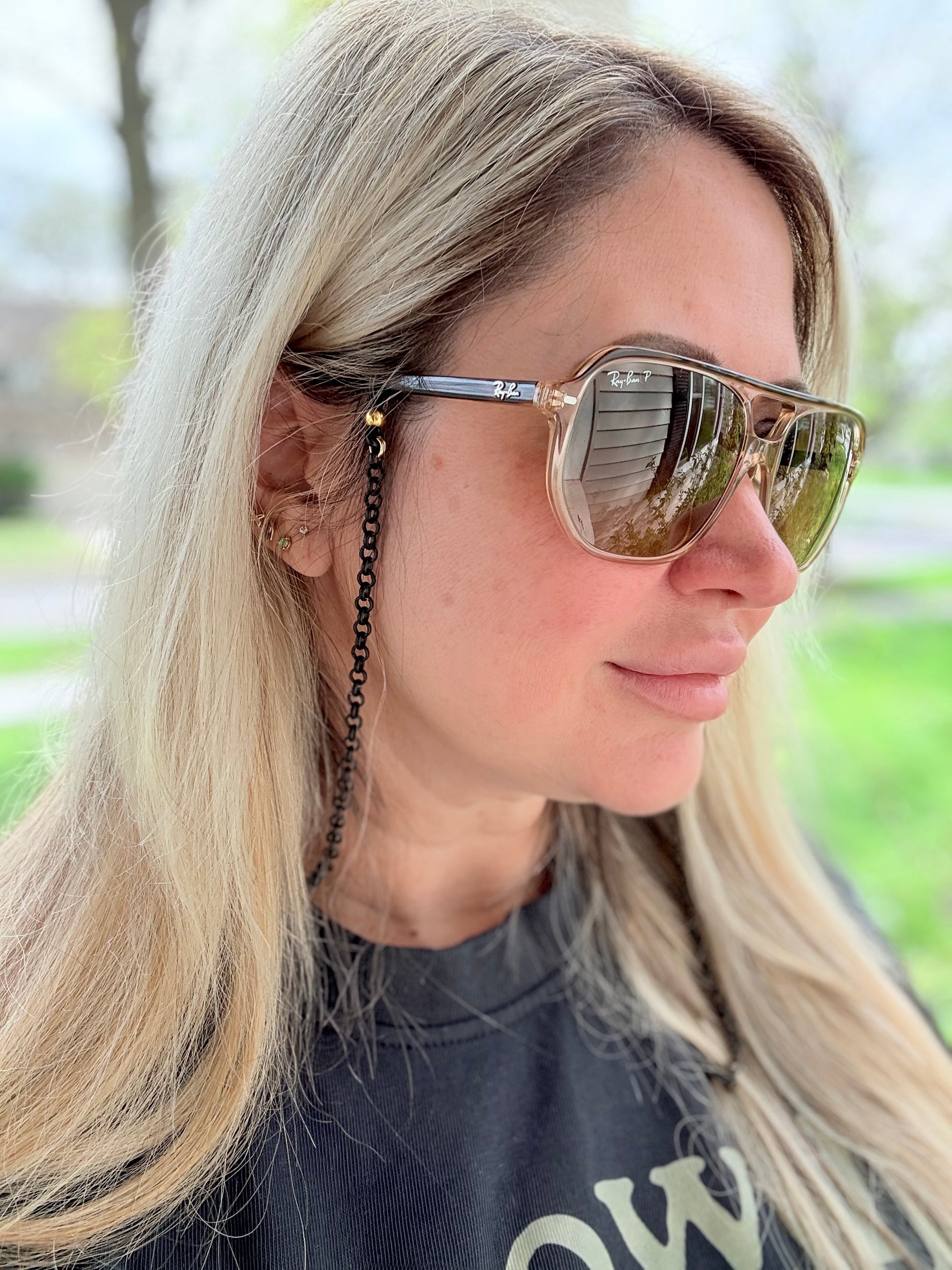 - Includes a black plated steel chain with clear coating; nickel + lead free
