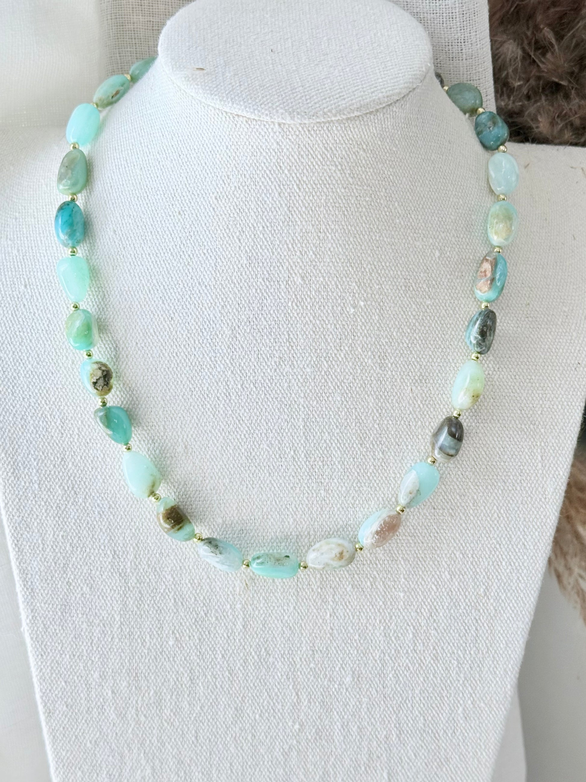 Luxe Peruvian Blue Opal + Gold Beaded Necklace