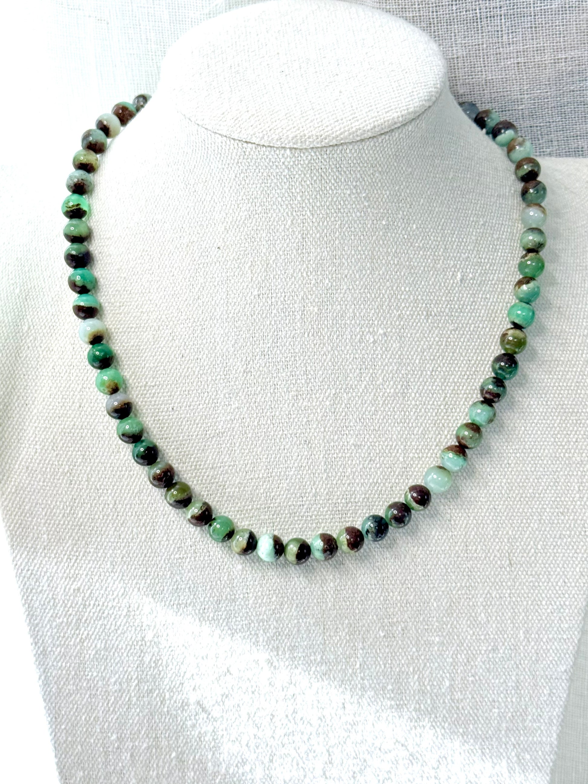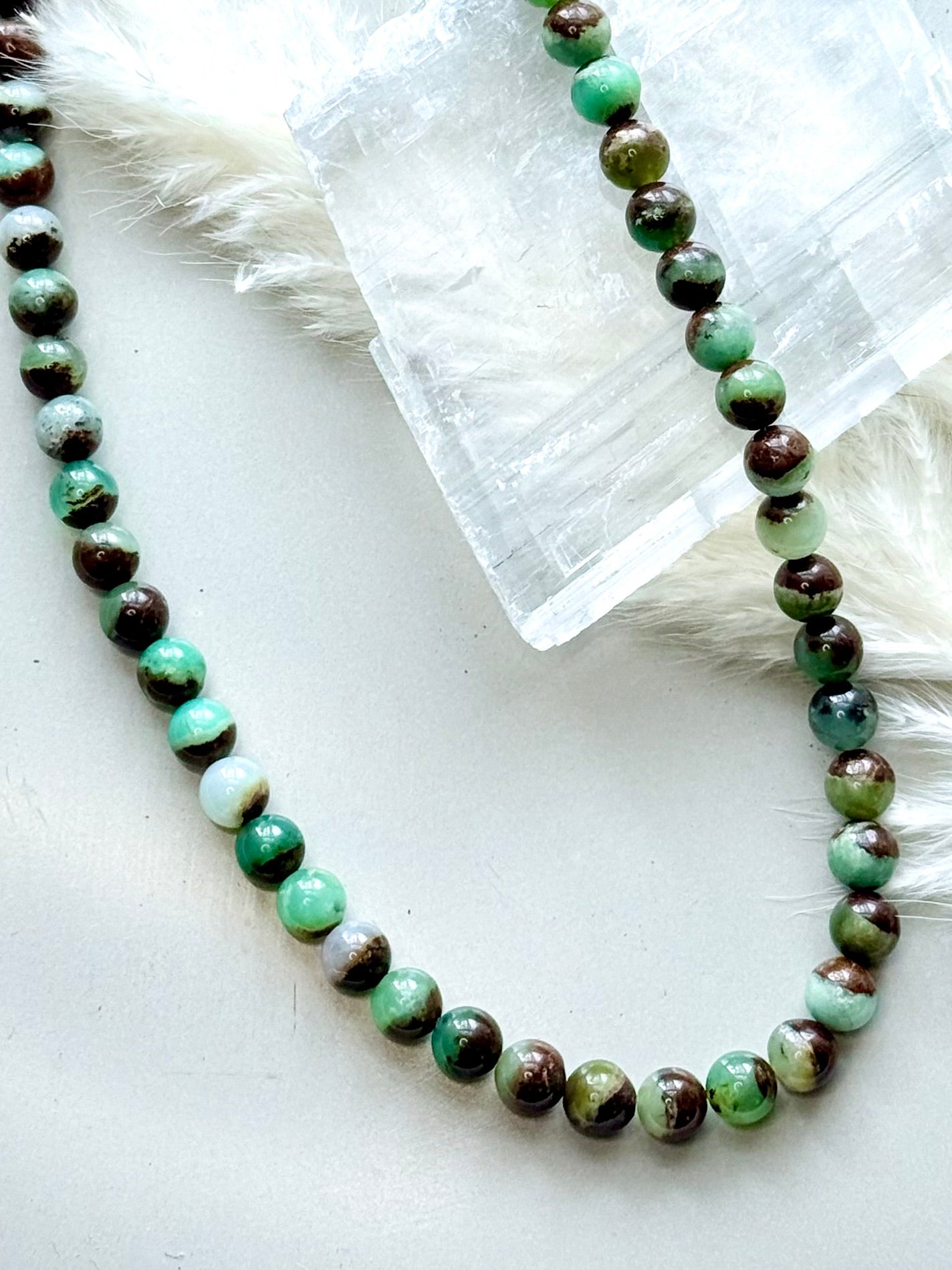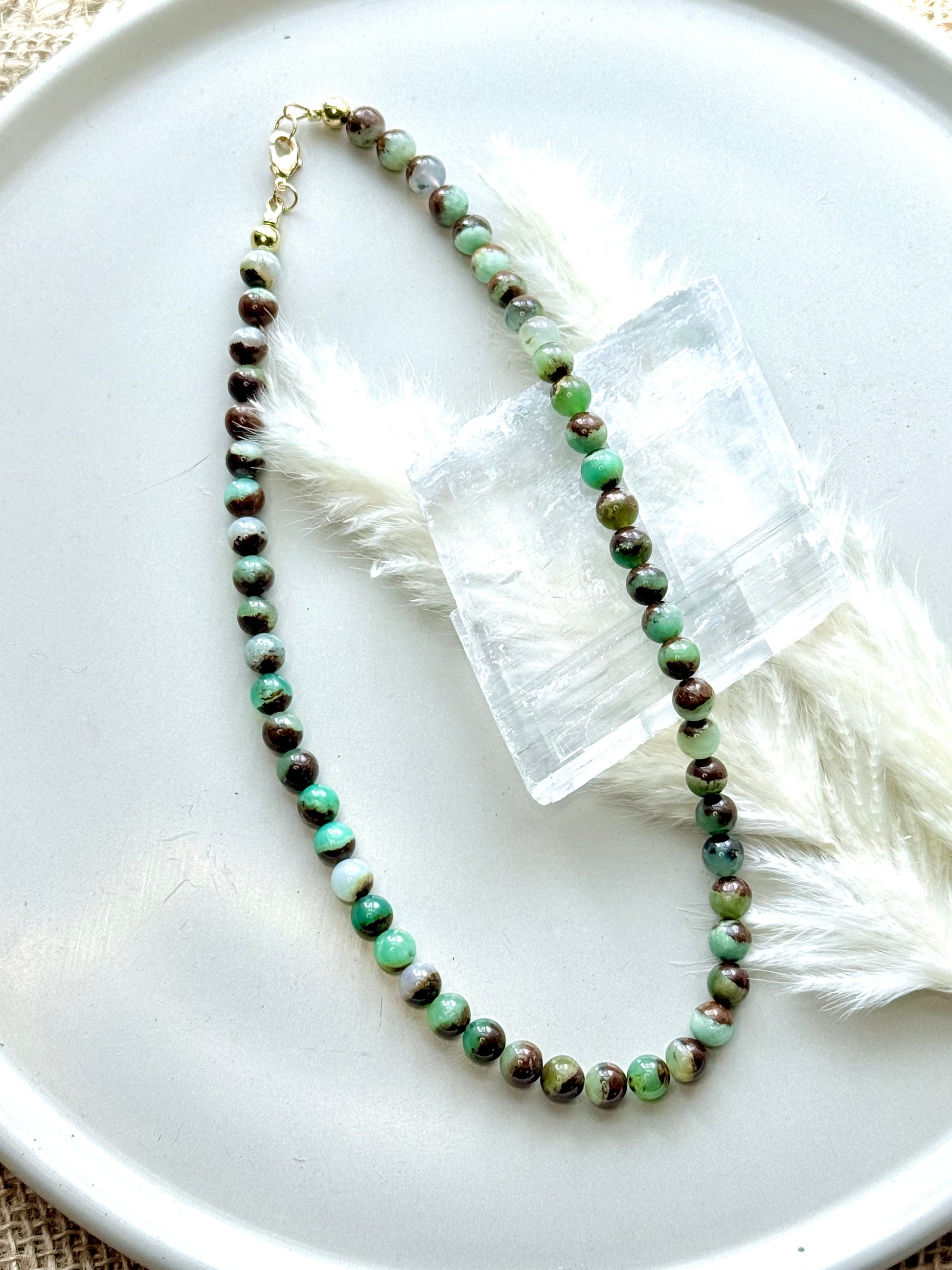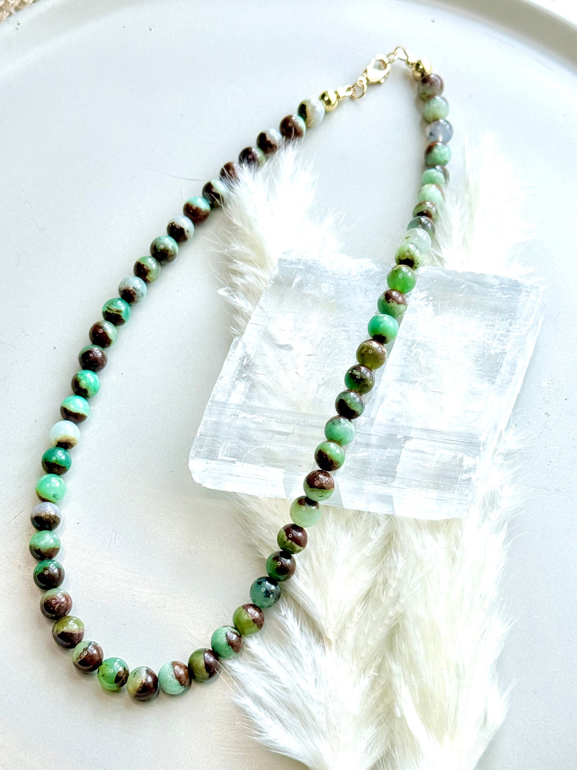 Brown/Green Chrysoprase + Gold Beaded Necklace