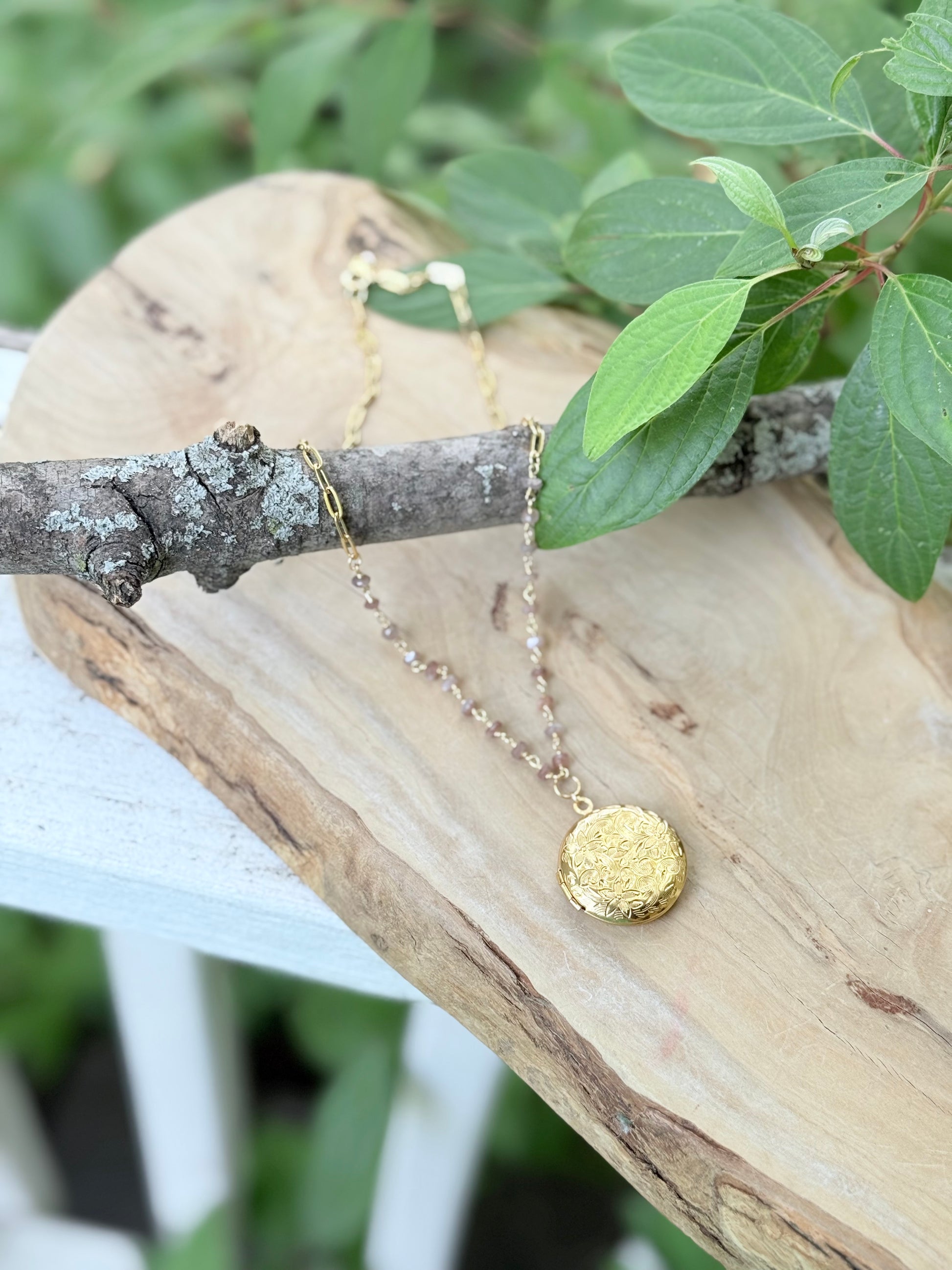 Chocolate Moonstone + Gold Circle Locket Necklace