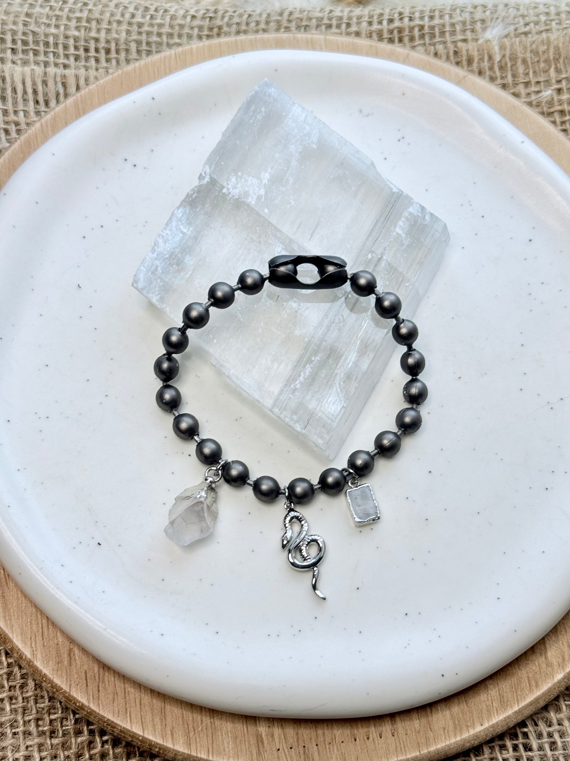 Chunky Matte Gunmetal Ball + Silver Snake Charm Bracelet