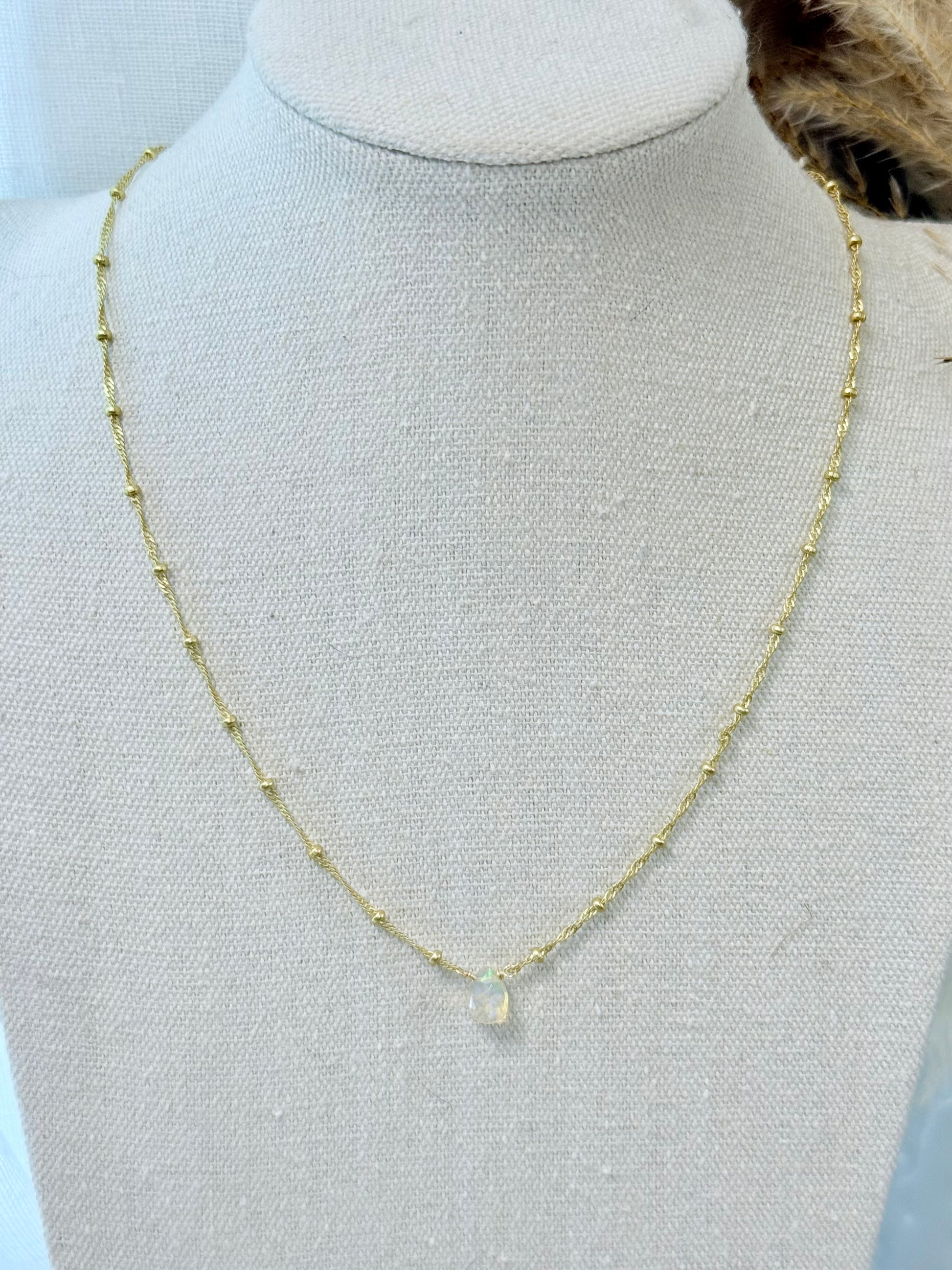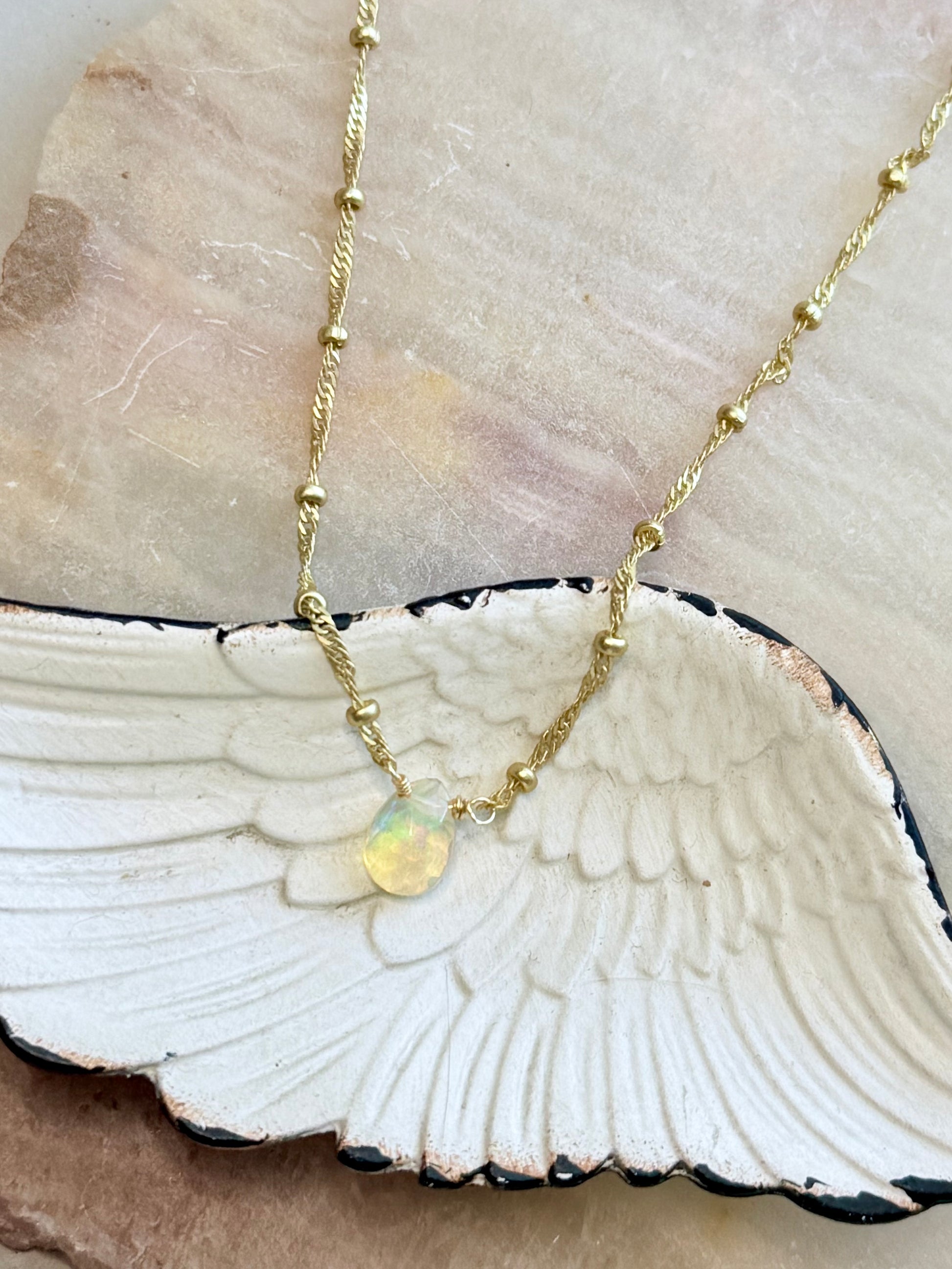 Ethiopian Opal + Matte Gold Necklace