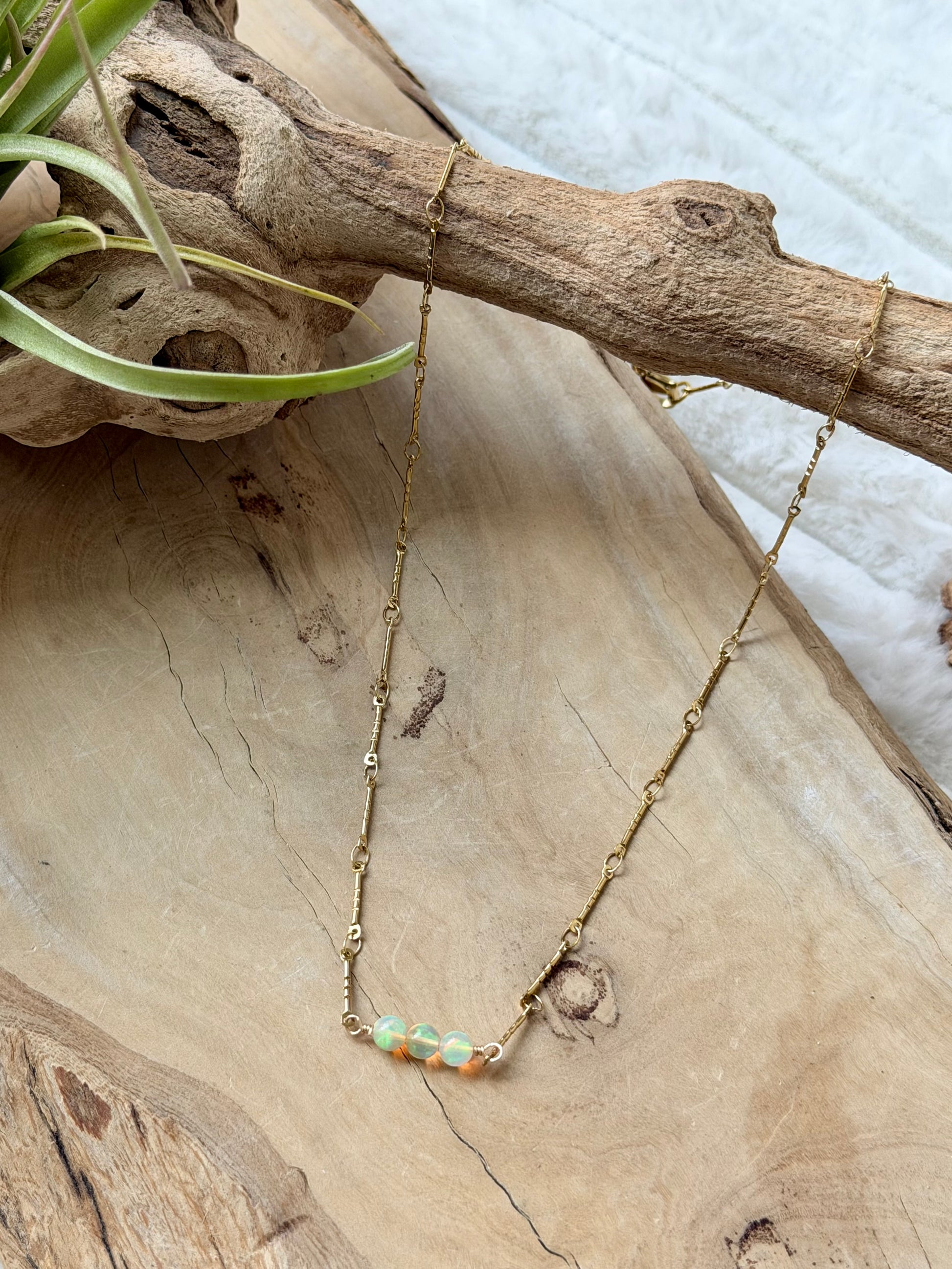 Ethiopian Opal + Gold Stainless Steel Necklace