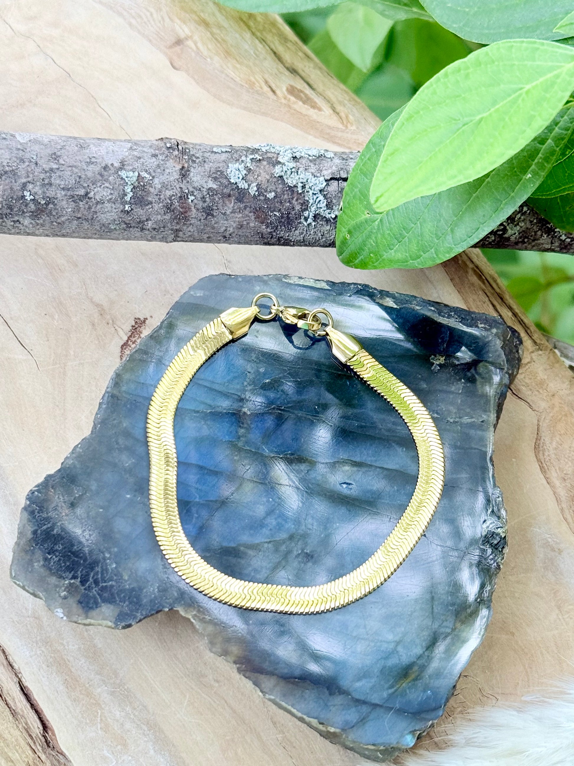 - 7.0-inch Herringbone bracelet, measuring roughly 5mm thick